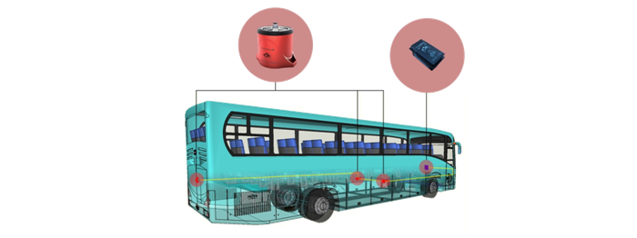 計(jì)案例:江西百路佳新能源6.5米長客車,內(nèi)有電池艙5個(gè),故需設(shè)計(jì)的保護(hù)區(qū)為5個(gè)保護(hù)區(qū),每個(gè)保護(hù)區(qū)配置1臺(tái)自動(dòng)滅火裝置(型號(hào)QRR0.03GW/SHS-AR23ZF),5個(gè)保護(hù)區(qū)內(nèi)的5臺(tái)裝置通過總承線束和駕駛員操作盤上的模塊聯(lián)接。