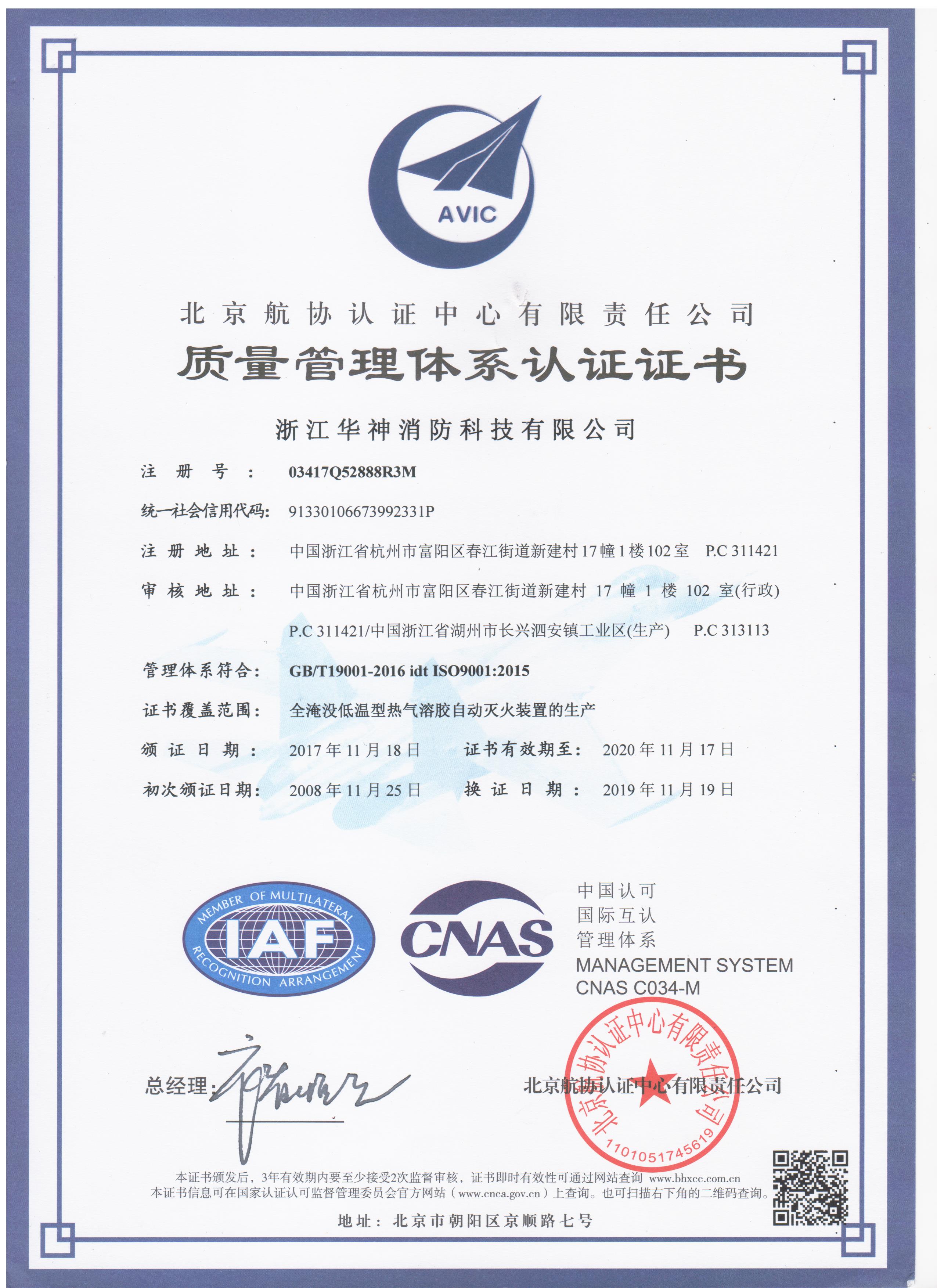 華神消防作為國家高新技術企業(yè),始終將產(chǎn)品質(zhì)量擺在第一位,作為企業(yè)發(fā)展的生命線。2008年華神建立之初即通過ISO9001質(zhì)量管理體系認證,歷時數(shù)十載,2019年,華神再次通過ISO9001質(zhì)量管理體系認證監(jiān)督審核。